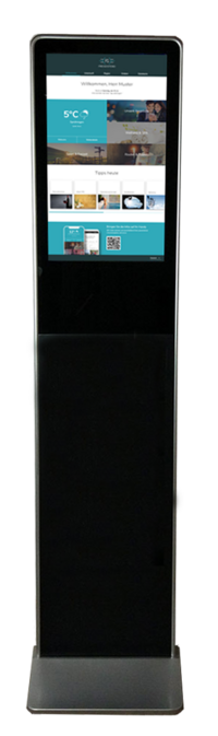 An der Rezeption, in der Lobby, … 24/7 Ihr Angebot und das der Region via Touchscreen-Terminal in einem digitalen Schaufenster präsentieren und mit Design sowie Content punkten: